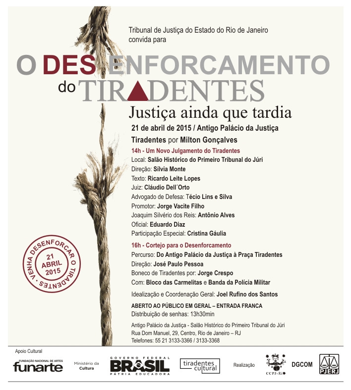O Advogado Técio Lins e Silva sobe aos palcos do Tribunal de Justiça do Rio, para defender Tiradentes, na leitura dramatizada “O Des-enforcamento de Tiradentes”, que será encenada dia 21 de abril.