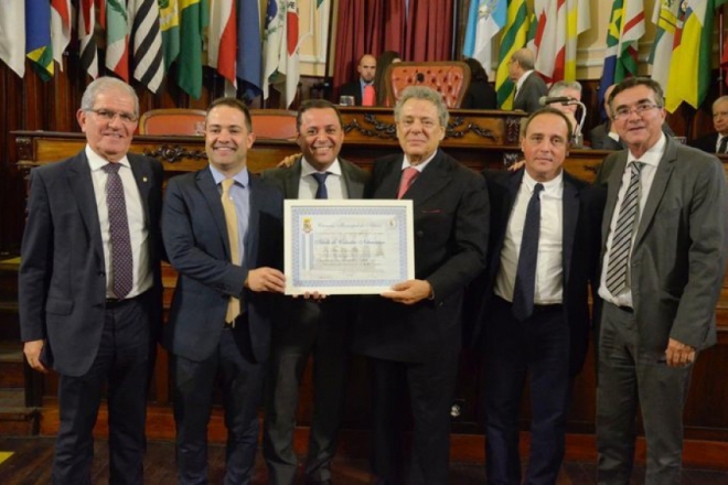 Técio Lins e Silva recebeu o título de Cidadão Niteroiense das mãos do vereador Leandro Portugal (PV), acompanhado do deputado federal Chico D'Ângelo, do prefeito Rodrigo Neves e dos deputados estaduais Waldeck Carneiro (PT) e Paulo Bagueira (SDD).