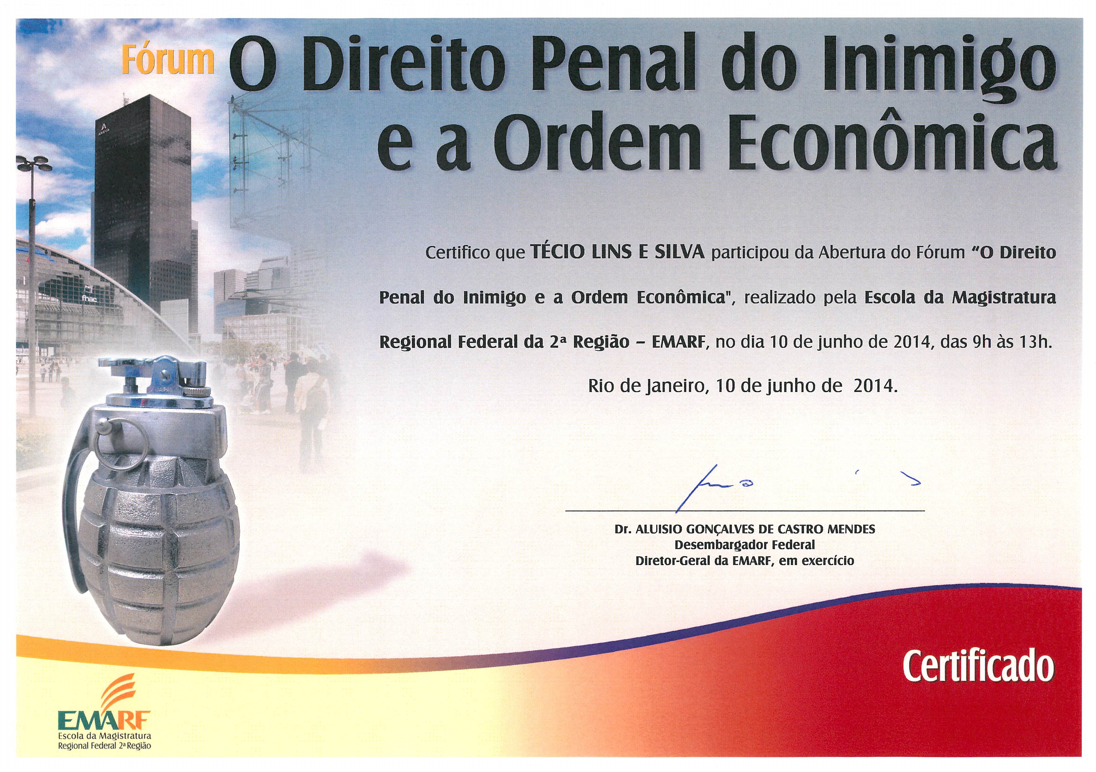 No último 10 de Junho, o advogado Técio Lins e Silva participou da abertura do Fórum "O Direito Penal do Inimigo e a Ordem Econômica" realizado pela Escola de Magistratura Regional Federal da 2ª Região - EMARF. O Forúm é parte integrante das atividades sobre questões polêmicas nos Ilícitos Financeiros cujo público-alvo foram Magistrados, Promotores, Procuradores da República, Servidores, Estudantes de Direito e demais interessados.