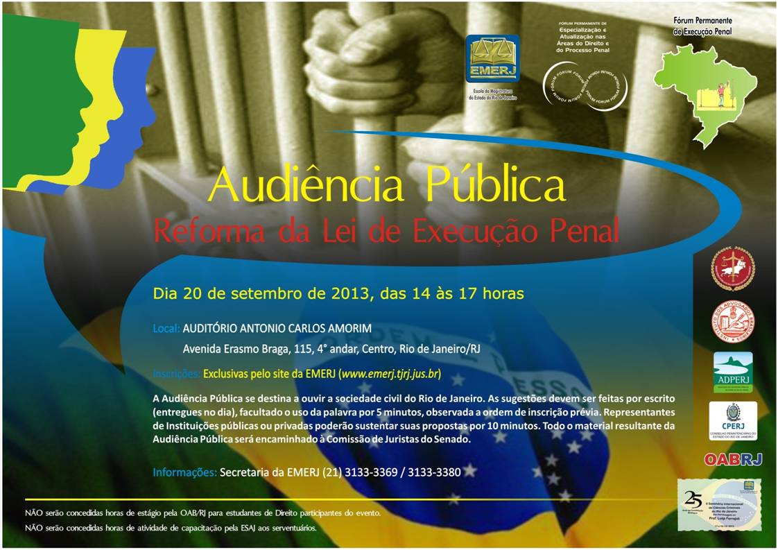O Advogado Técio Lins e Silva é membro da Comissão de Juristas que o Senado instituiu para apresentar o anteprojeto de reforma da Lei de Execução Penal. Nessa condição, está convidando para a Audiência Pública que será realizada com o apoio da EMERJ no próximo dia 20 de setembro. O objetivo é receber da sociedade civil do Rio de Janeiro sugestões para a Comissão.